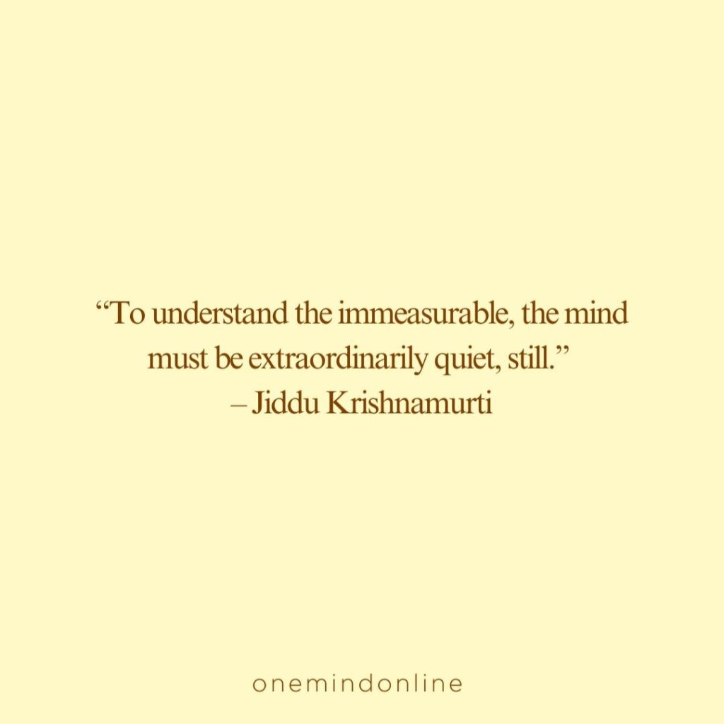 “To understand the immeasurable, the mind must be extraordinarily quiet, still.” – Jiddu Krishnamurti