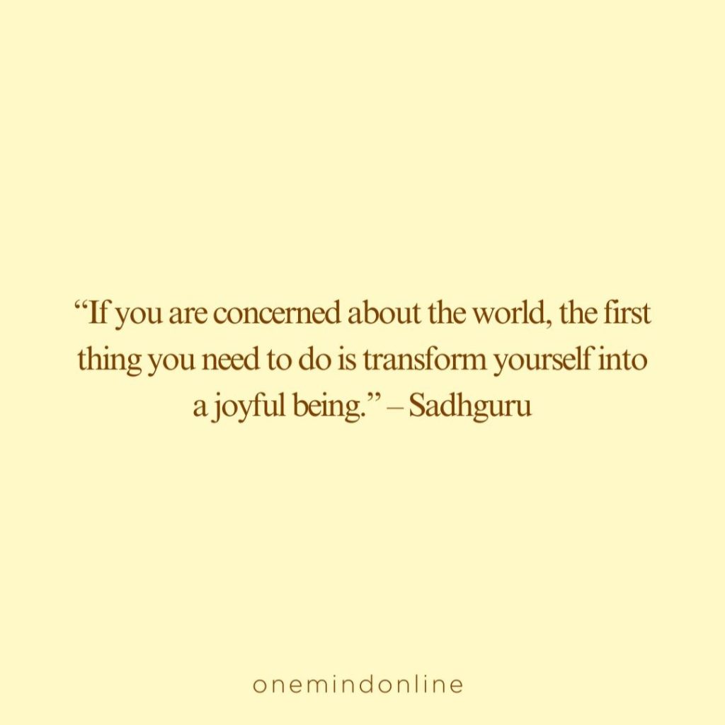 “If you are concerned about the world, the first thing you need to do is transform yourself into a joyful being.” – Sadhguru