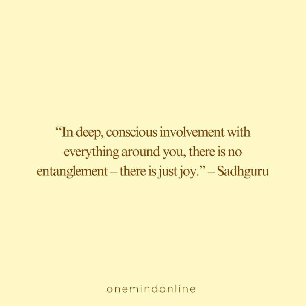 “In deep, conscious involvement with everything around you, there is no entanglement – there is just joy.” – Sadhguru