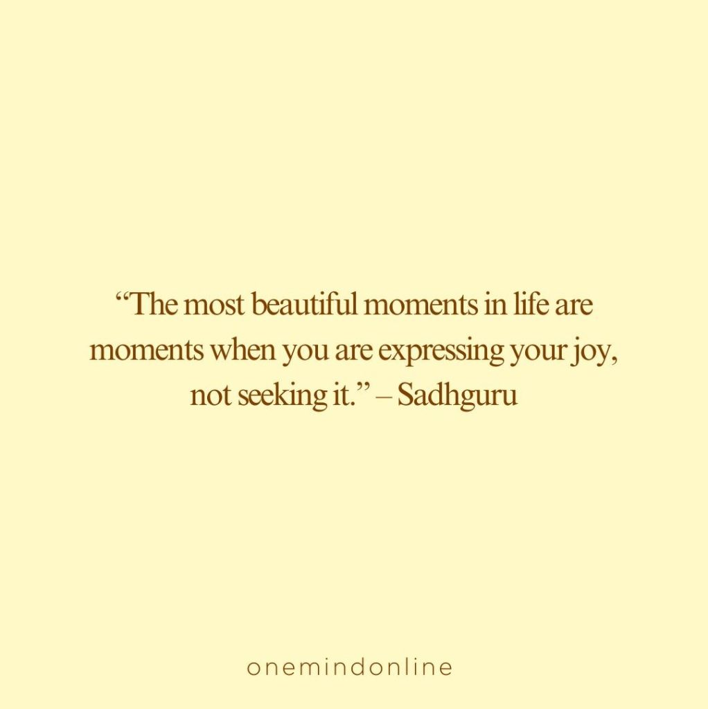 “The most beautiful moments in life are moments when you are expressing your joy, not seeking it.” – Sadhguru