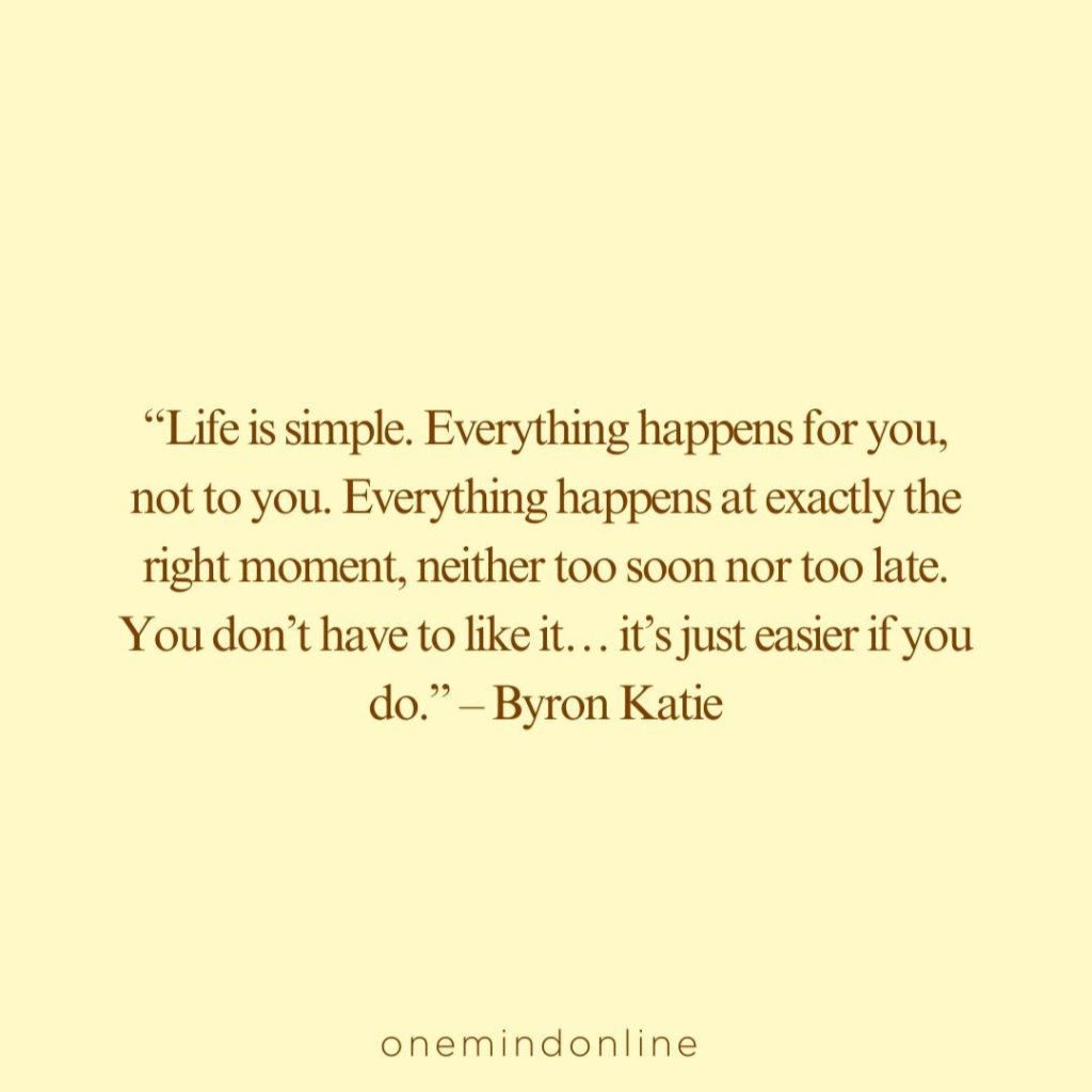 “Life is simple. Everything happens for you, not to you. Everything happens at exactly the right moment, neither too soon nor too late. You don’t have to like it… it’s just easier if you do.” – Byron Katie