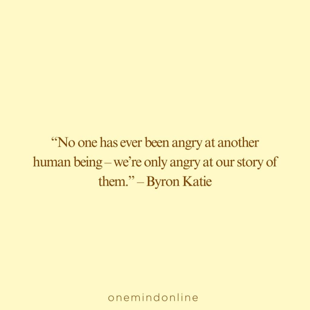 “No one has ever been angry at another human being – we’re only angry at our story of them.” – Byron Katie