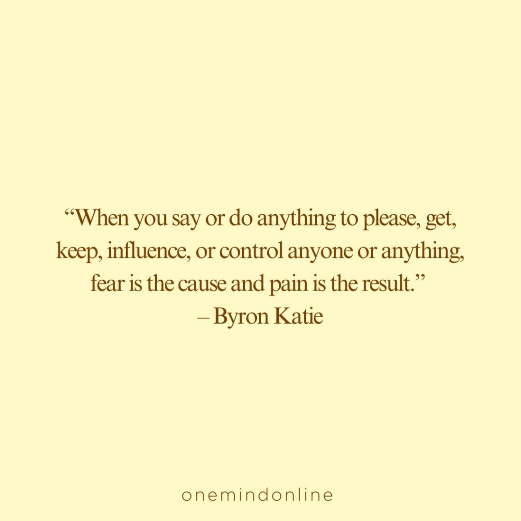 “When you say or do anything to please, to get, to keep, to influence, or to control anyone or anything, fear is the cause of this behaviour and pain is always the result.” – Byron Katie