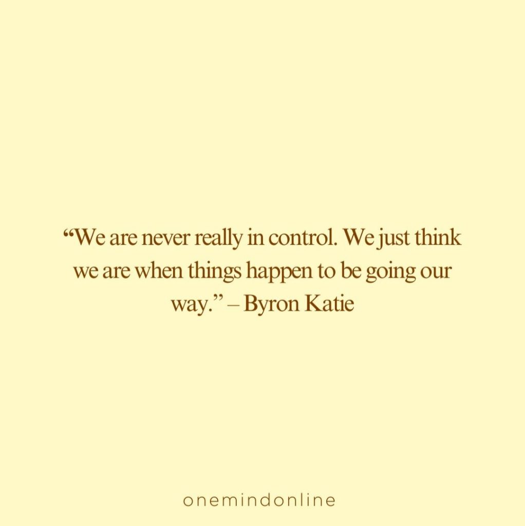 “We are never really in control. We just think we are when things happen to be going our way.” – Byron Katie