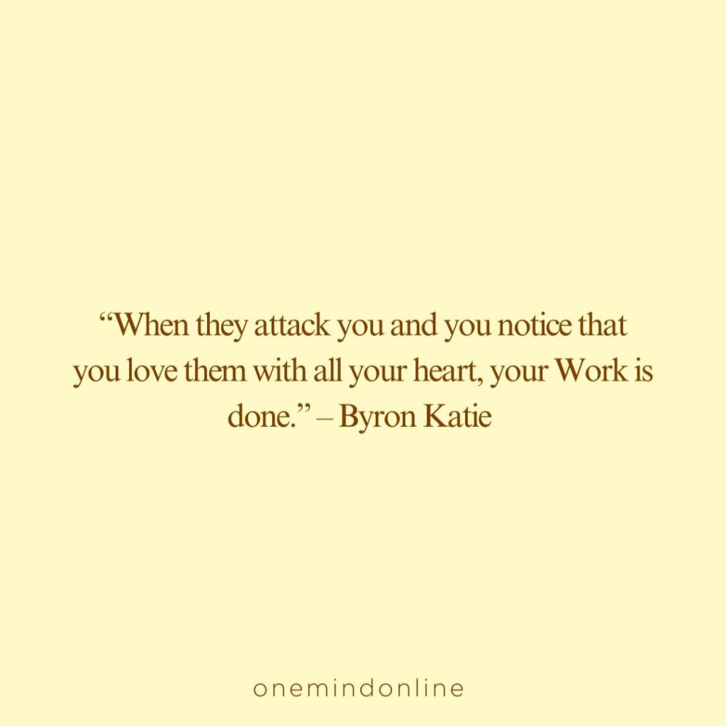“When they attack you and you notice that you love them with all your heart, your Work is done.” – Byron Katie