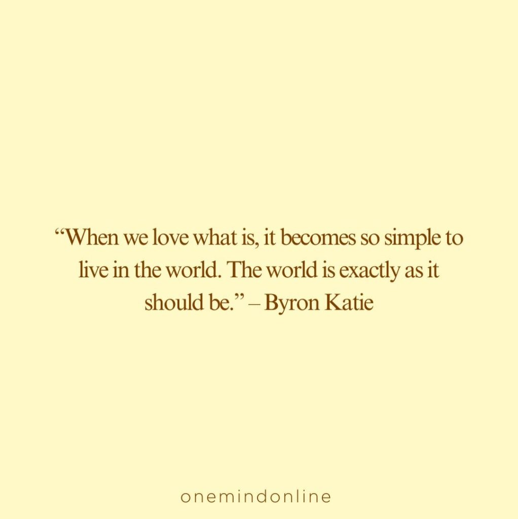 “When we love what is, it becomes so simple to live in the world. The world is exactly as it should be.” – Byron Katie