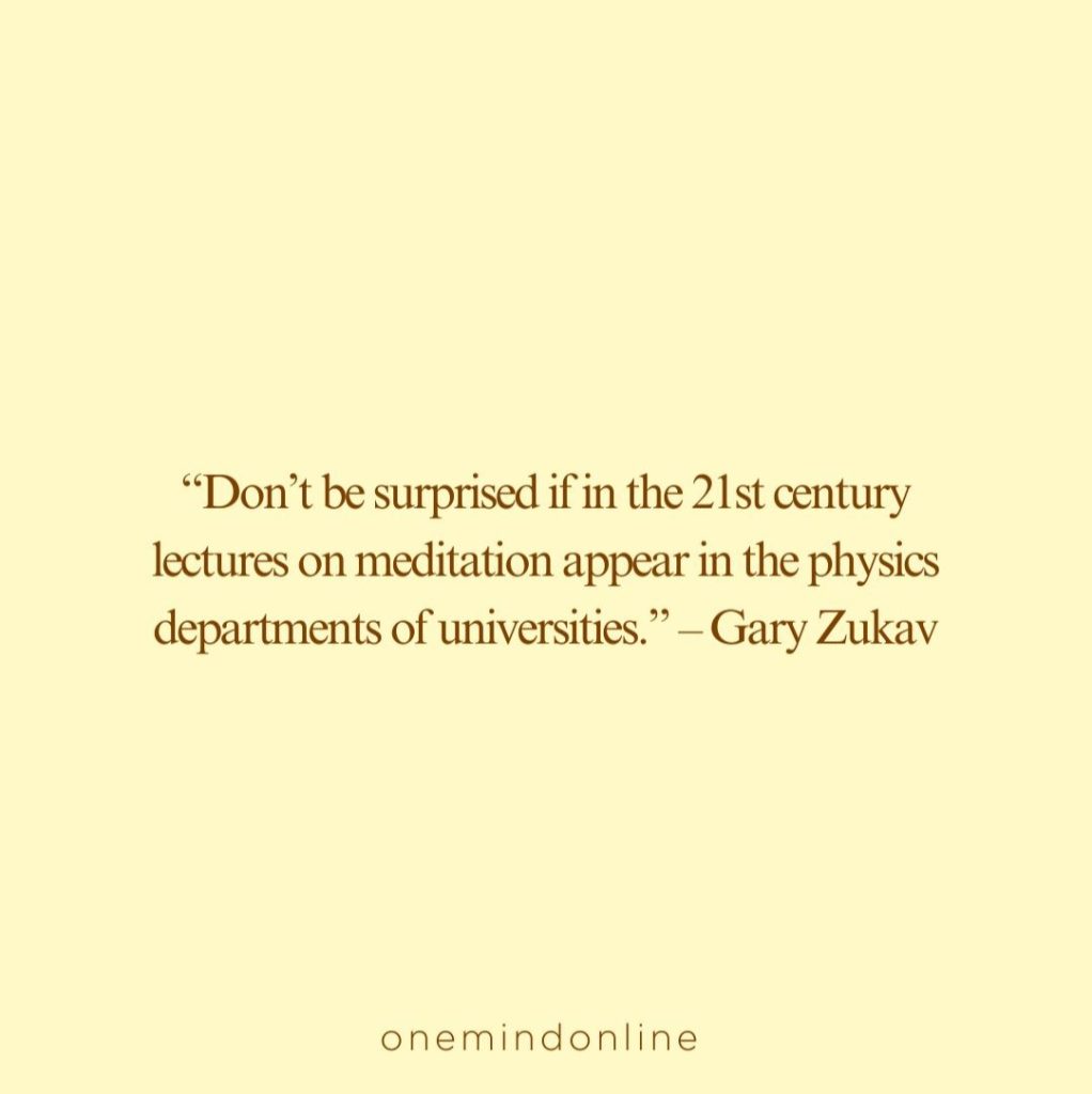 “Don’t be surprised if in the 21st century lectures on meditation appear in the physics departments of universities.” – Gary Zukav