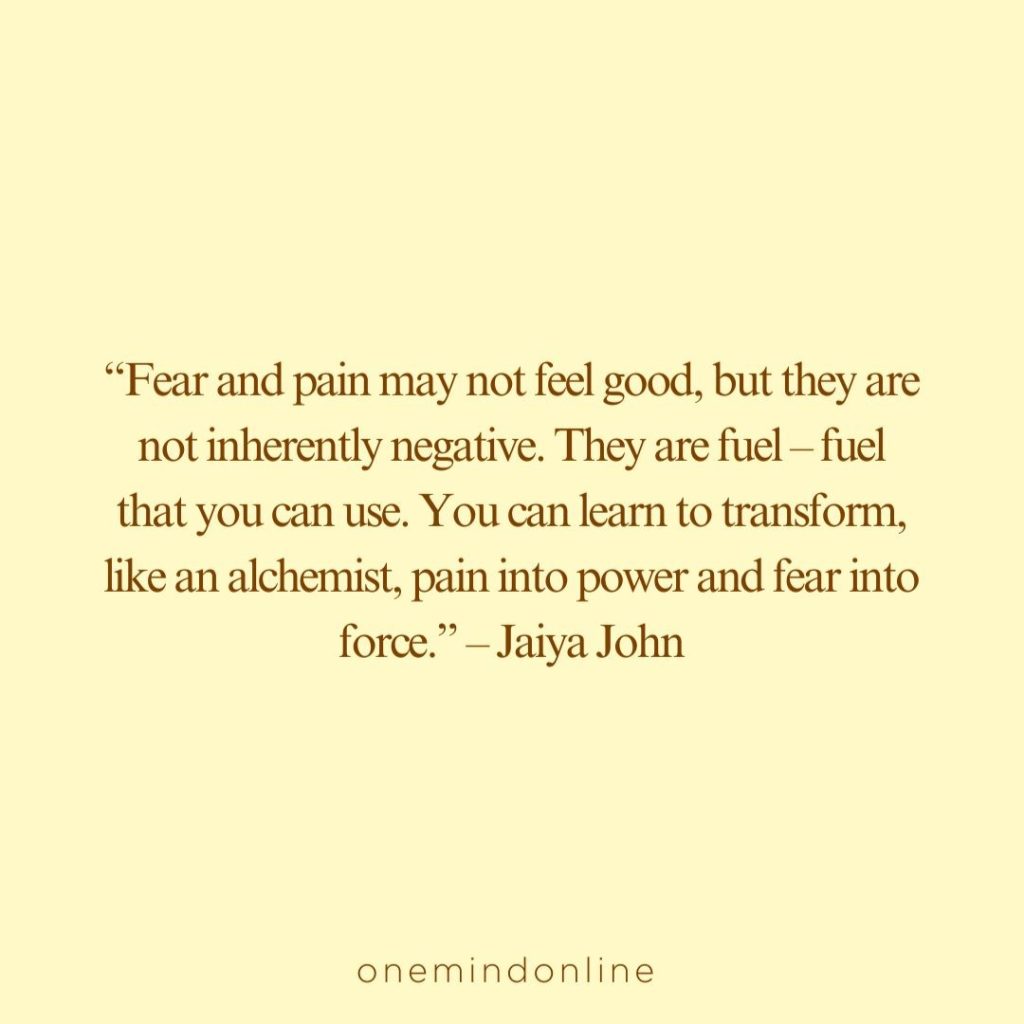 “Fear and pain may not feel good, but they are not inherently negative. They are fuel – fuel that you can use. You can learn to transform, like an alchemist, pain into power and fear into force.” – Jaiya John