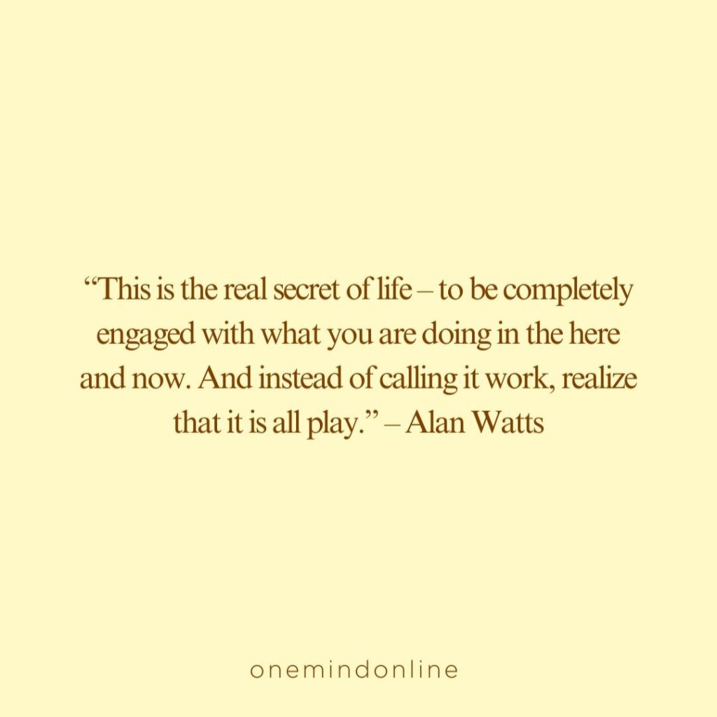 “This is the real secret of life – to be completely engaged with what you are doing in the here and now. And instead of calling it work, realize that it is all play.” – Alan Watts