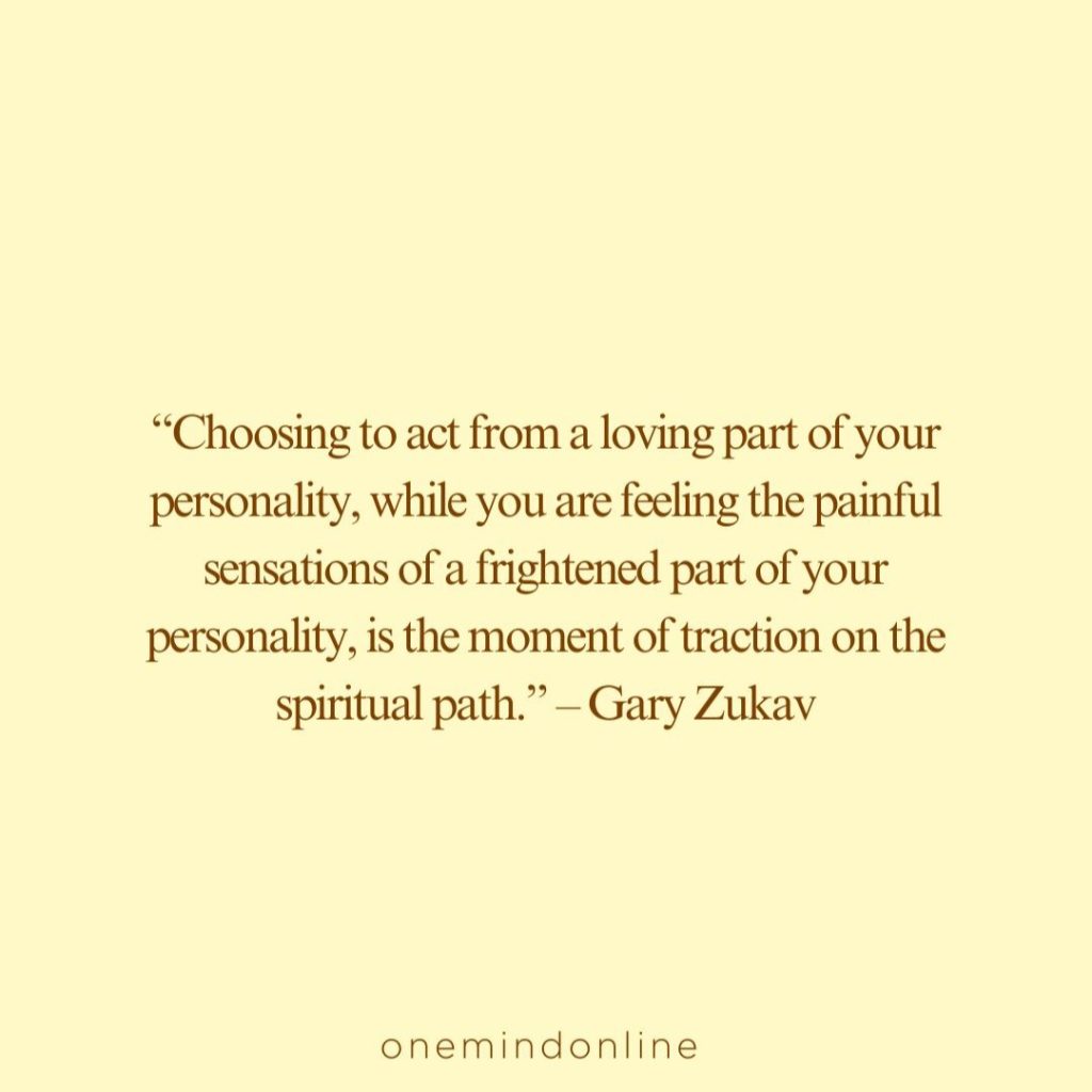 “Choosing to act from a loving part of your personality, while you are feeling the painful sensations of a frightened part of your personality, is the moment of traction on the spiritual path.” – Gary Zukav