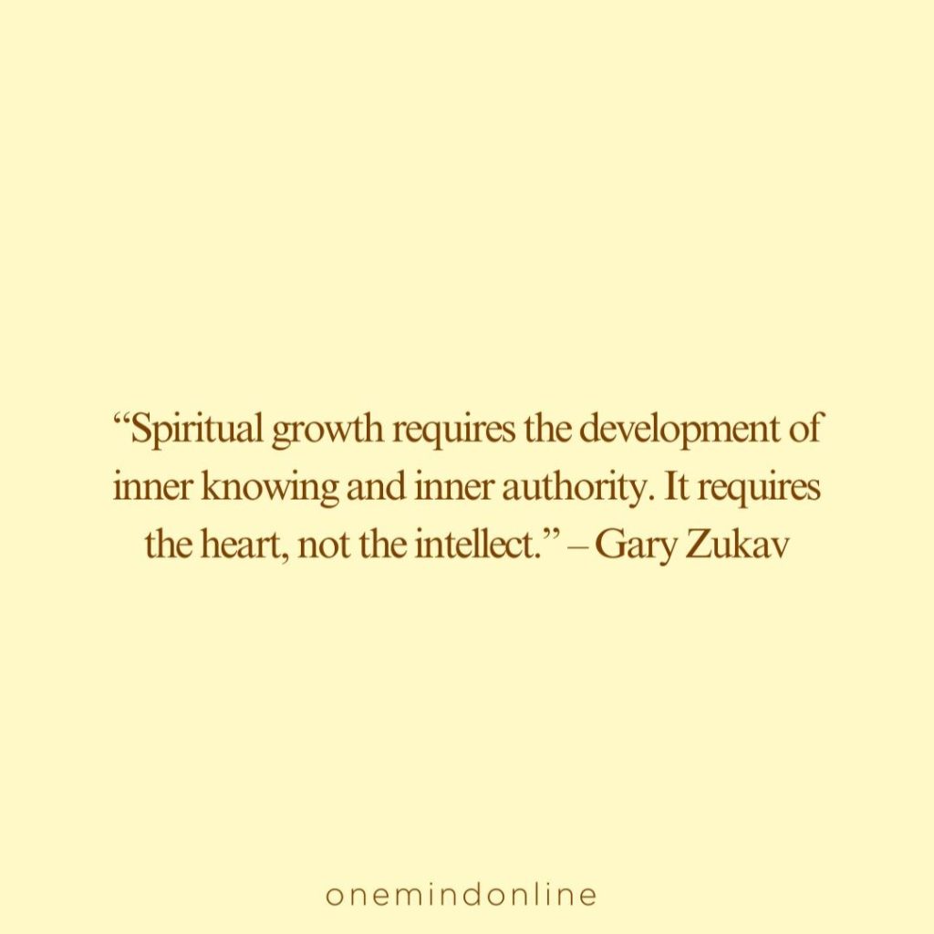 “Spiritual growth requires the development of inner knowing and inner authority. It requires the heart, not the intellect.” – Gary Zukav