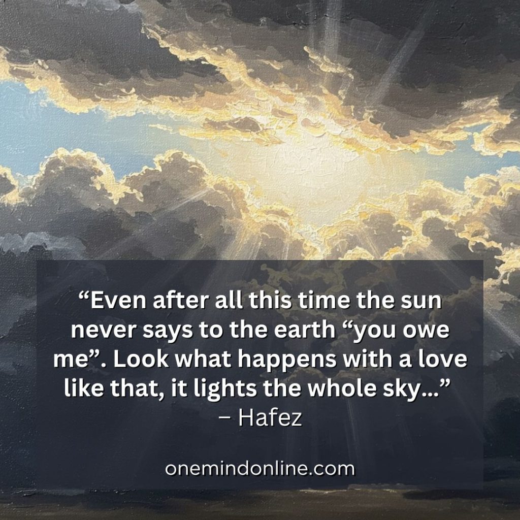 “Even after all this time the sun never says to the earth “you owe me”. Look what happens with a love like that, it lights the whole sky… the Earth would die if the sun stopped kissing her.” – Hafez