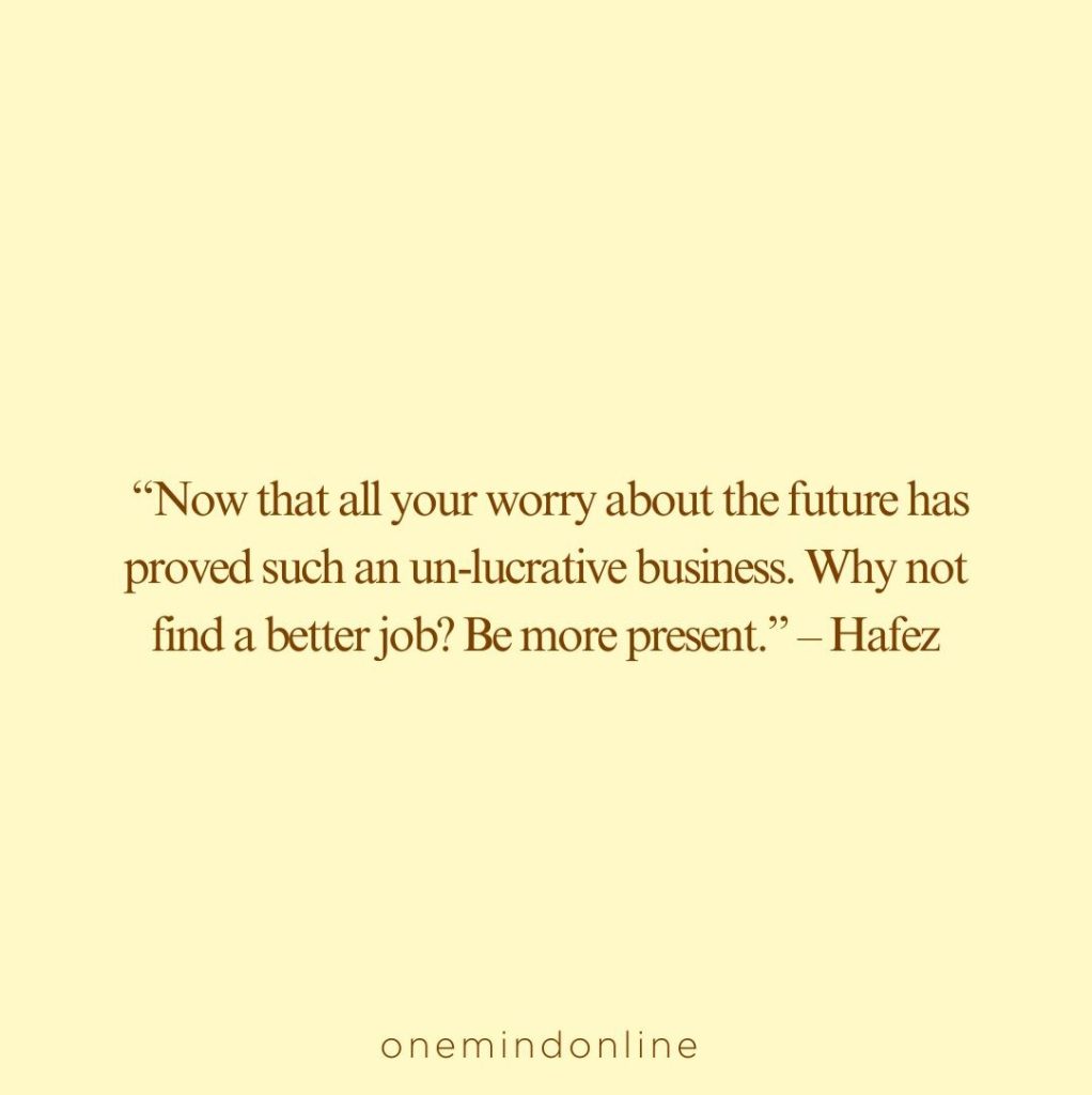 “Now that all your worry about the future has proved such an un-lucrative business. Why not find a better job? Be more present.” – Hafez