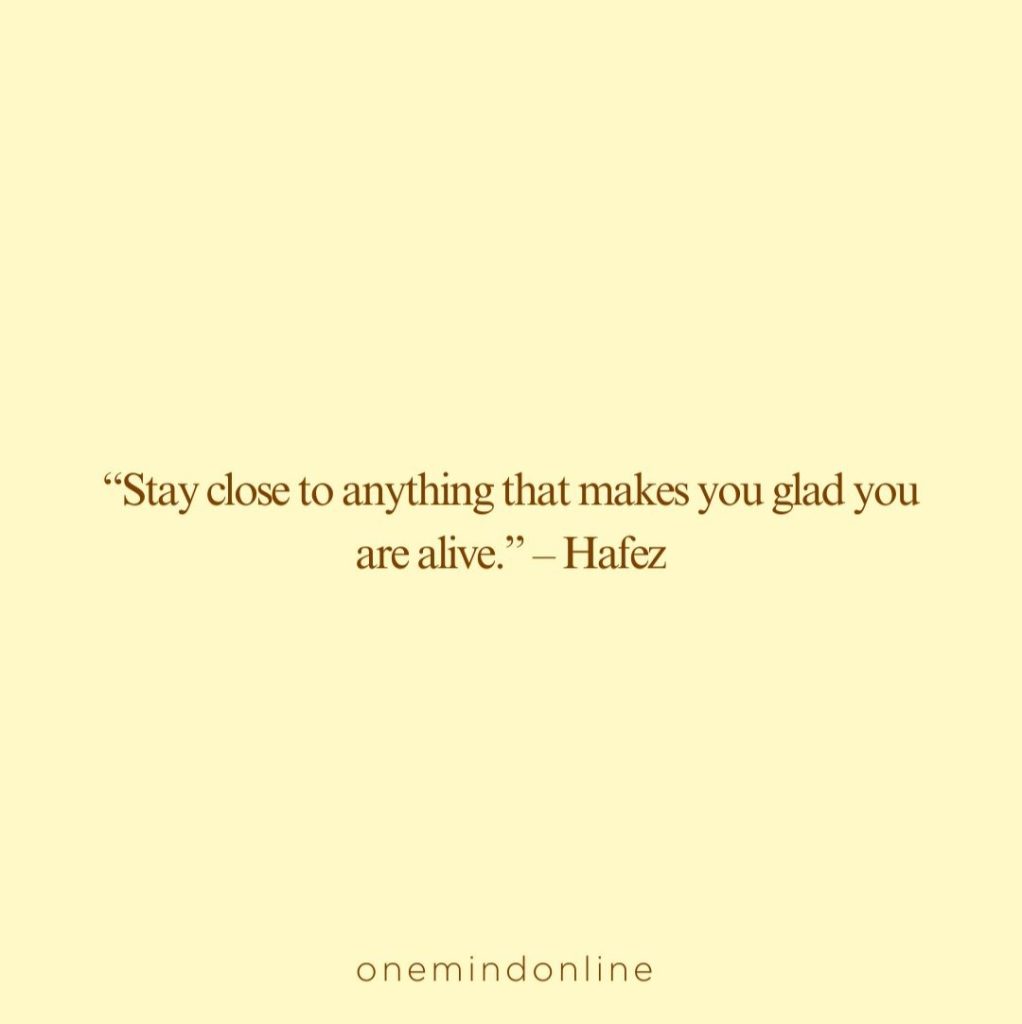 “Start seeing everything as God. But keep it a secret. Become like a man who is awestruck and nourished listening to a golden nightingale sing in a beautiful foreign language while God – invisible to most – nests upon its tongue. When a dog runs up to you wagging its ecstatic tail, you lean down and whisper in its ear, ‘Beloved, I am so glad you are happy to see me. Beloved, I am so glad, so very glad you have come.’” – Hafez