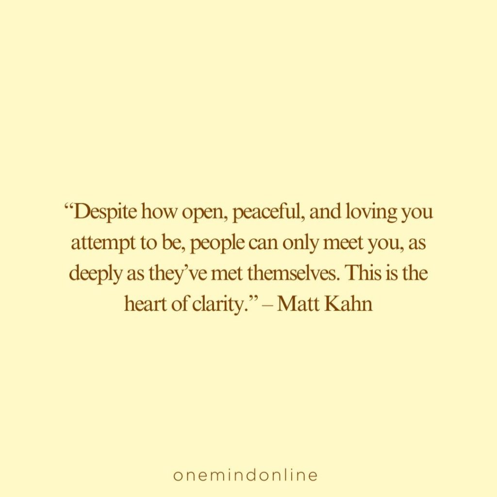 “Despite how open, peaceful, and loving you attempt to be, people can only meet you, as deeply as they’ve met themselves. This is the heart of clarity.” – Matt Kahn