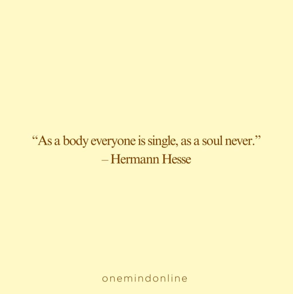 “As a body everyone is single, as a soul never.” – Hermann Hesse