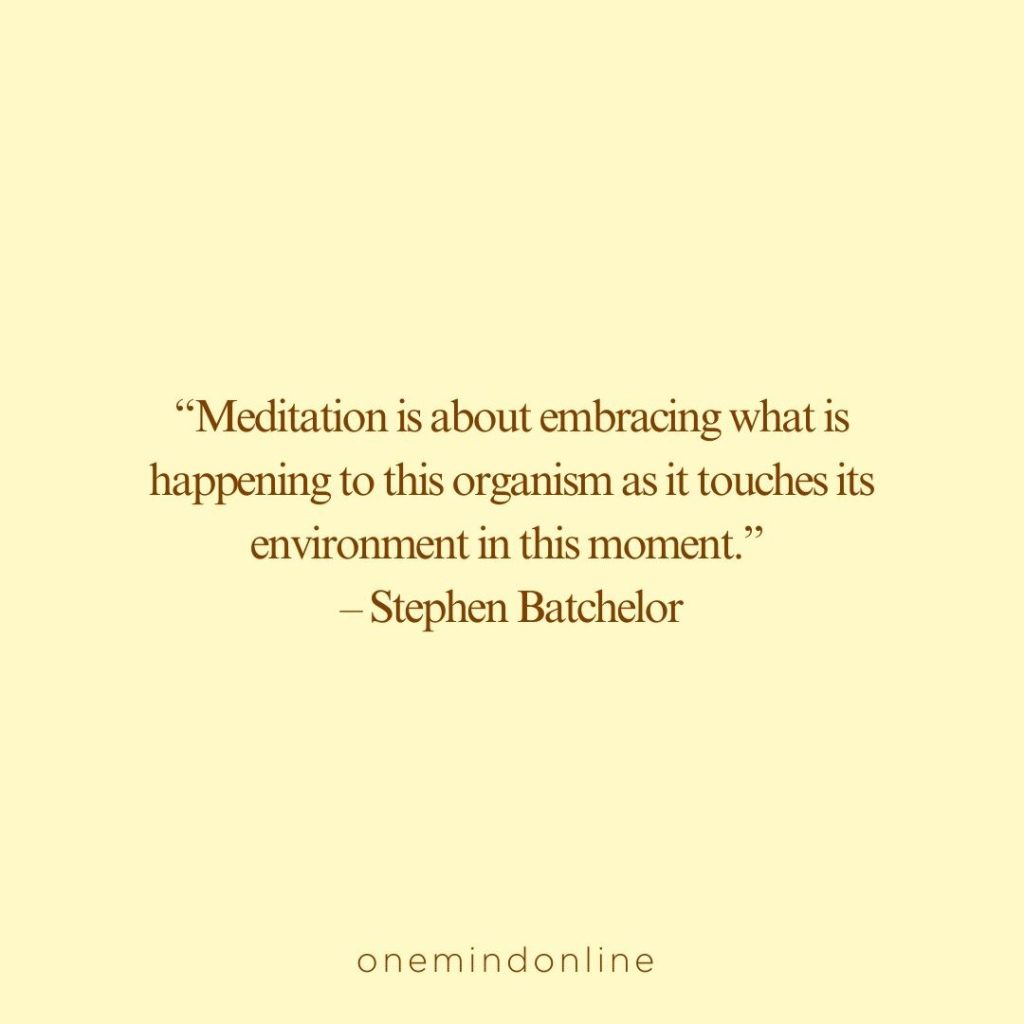 “Meditation is about embracing what is happening to this organism as it touches its environment in this moment.” – Stephen Batchelor