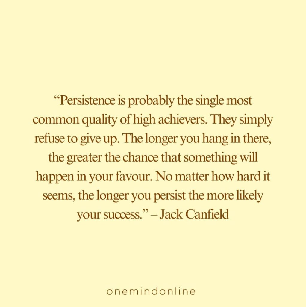 “Persistence is probably the single most common quality of high achievers. They simply refuse to give up. The longer you hang in there, the greater the chance that something will happen in your favour. No matter how hard it seems, the longer you persist the more likely your success.” – Jack Canfield