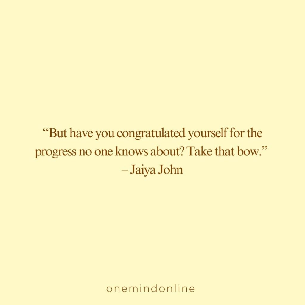 “But have you congratulated yourself for the progress no one knows about? Take that bow.” – Jaiya John