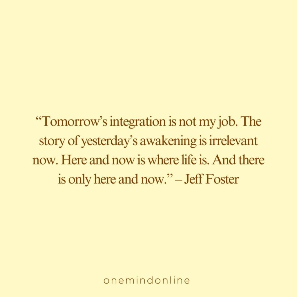 “Tomorrow’s integration is not my job. The story of yesterday’s awakening is irrelevant now. Here and now is where life is. And there is only here and now.” – Jeff Foster