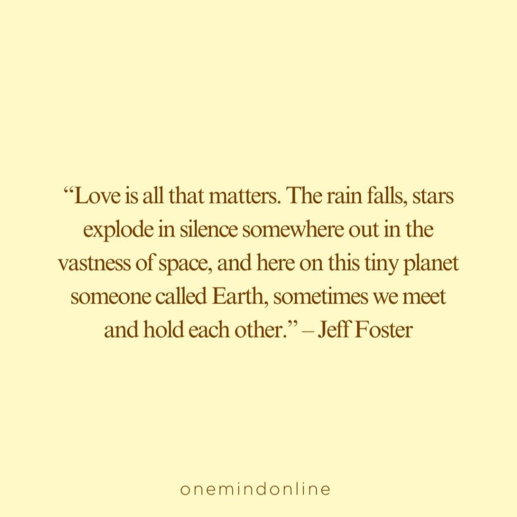 “Love is all that matters. The rain falls, stars explode in silence somewhere out in the vastness of space, and here on this tiny planet someone called Earth, sometimes we meet and hold each other.” – Jeff Foster