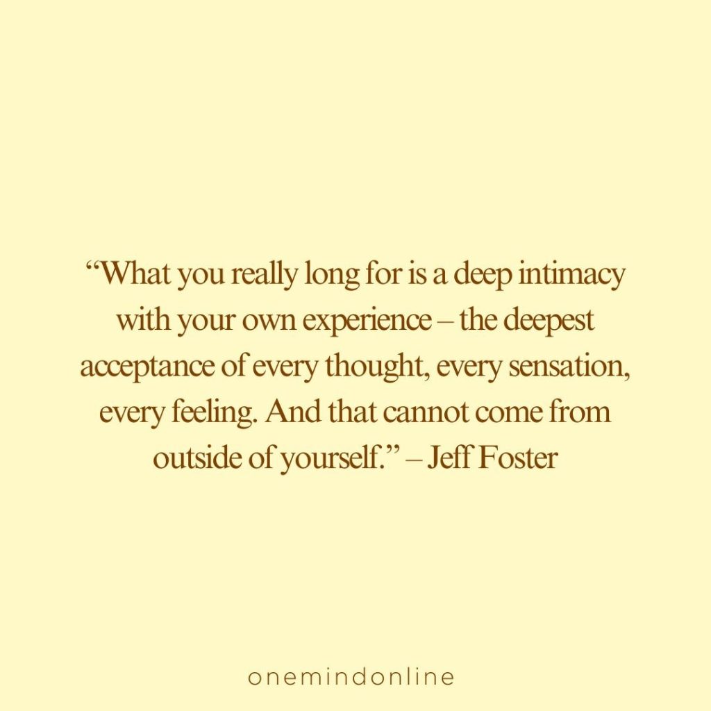 “What you really long for is a deep intimacy with your own experience – the deepest acceptance of every thought, every sensation, every feeling. And that cannot come from outside of yourself.” – Jeff Foster
