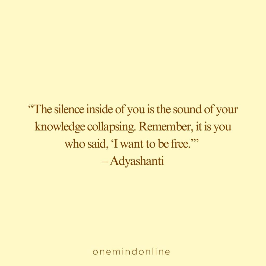“The silence inside of you is the sound of your knowledge collapsing. Remember, it is you who said, ‘I want to be free.’” – Adyashanti