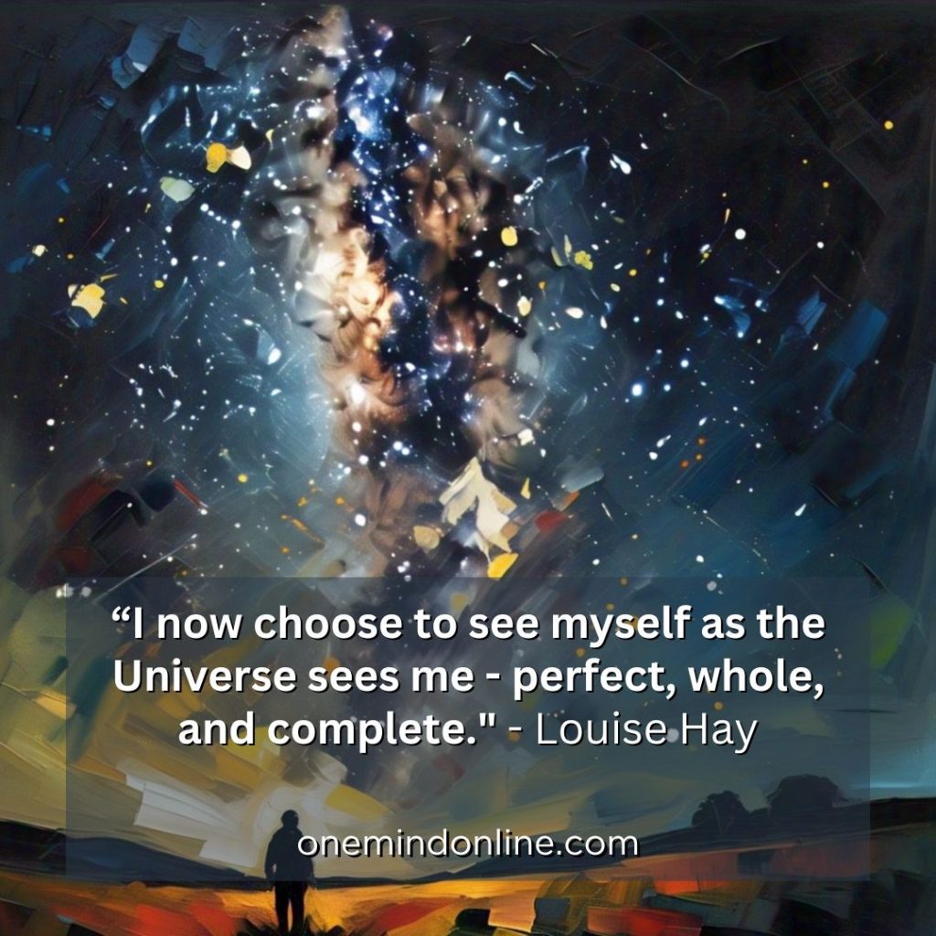 “In the infinity of life where I am, All is perfect, whole and complete, I no longer choose to believe in old limitations and lack, I now choose to begin to see myself As the Universe sees me – perfect, whole, and complete.” – Louise Hay