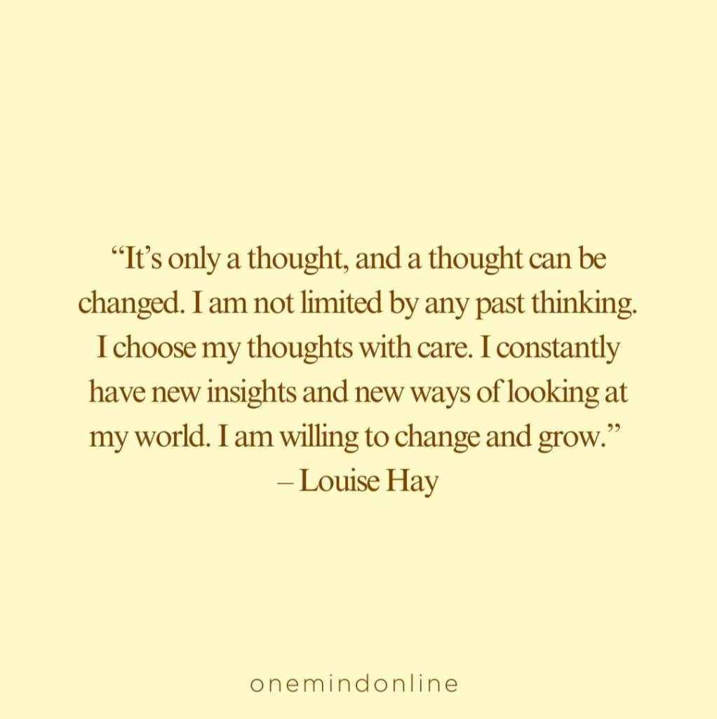 “It’s only a thought, and a thought can be changed. I am not limited by any past thinking. I choose my thoughts with care. I constantly have new insights and new ways of looking at my world. I am willing to change and grow.” – Louise Hay