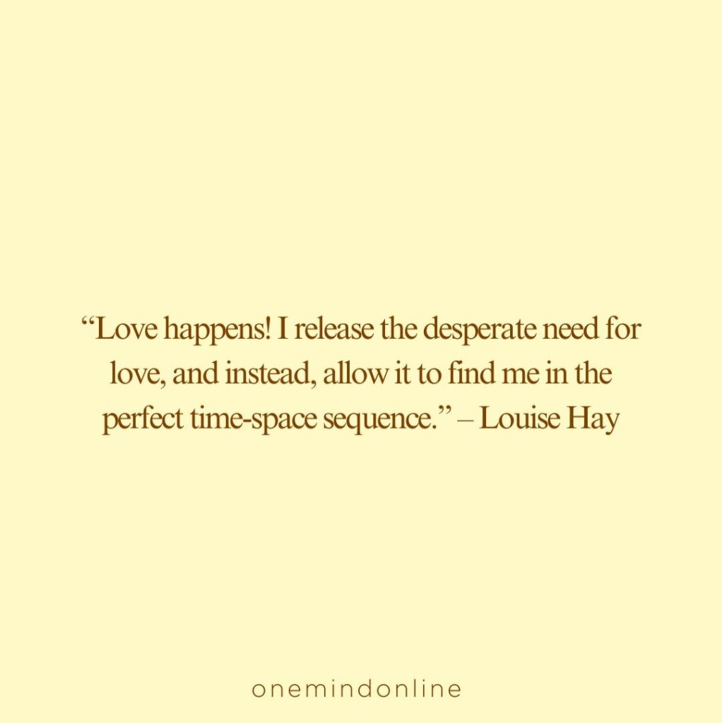 “Love happens! I release the desperate need for love, and instead, allow it to find me in the perfect time-space sequence.” – Louise Hay