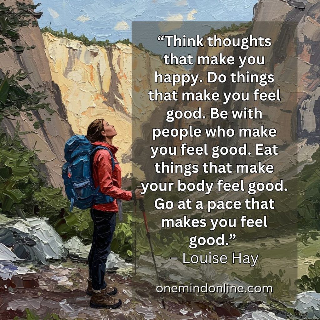 “Think thoughts that make you happy. Do things that make you feel good. Be with people who make you feel good. Eat things that make your body feel good. Go at a pace that makes you feel good.” – Louise Hay