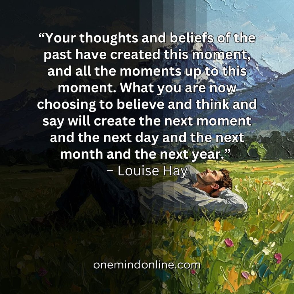 “Your thoughts and beliefs of the past have created this moment, and all the moments up to this moment. What you are now choosing to believe and think and say will create the next moment and the next day and the next month and the next year.” – Louise Hay