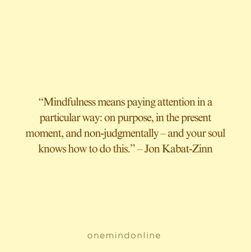 “Mindfulness means paying attention in a particular way: on purpose, in the present moment, and non-judgmentally – and your soul knows how to do this.” – Jon Kabat-Zinn