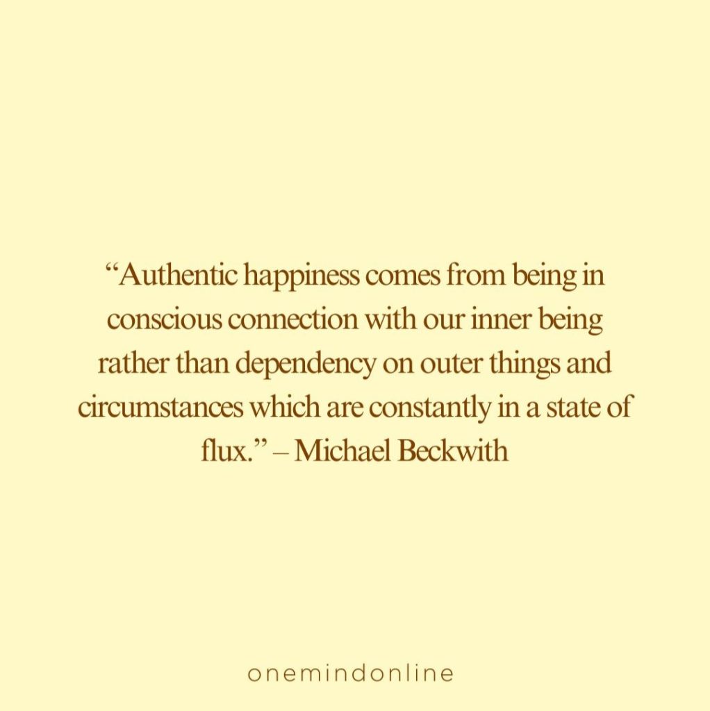 “Authentic happiness comes from being in conscious connection with our inner being rather than dependency on outer things and circumstances which are constantly in a state of flux.” – Michael Beckwith