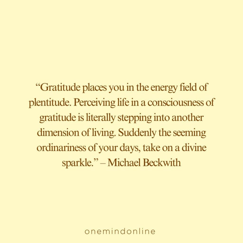 “Gratitude places you in the energy field of plentitude. Perceiving life in a consciousness of gratitude is literally stepping into another dimension of living. Suddenly the seeming ordinariness of your days, take on a divine sparkle.” – Michael Beckwith