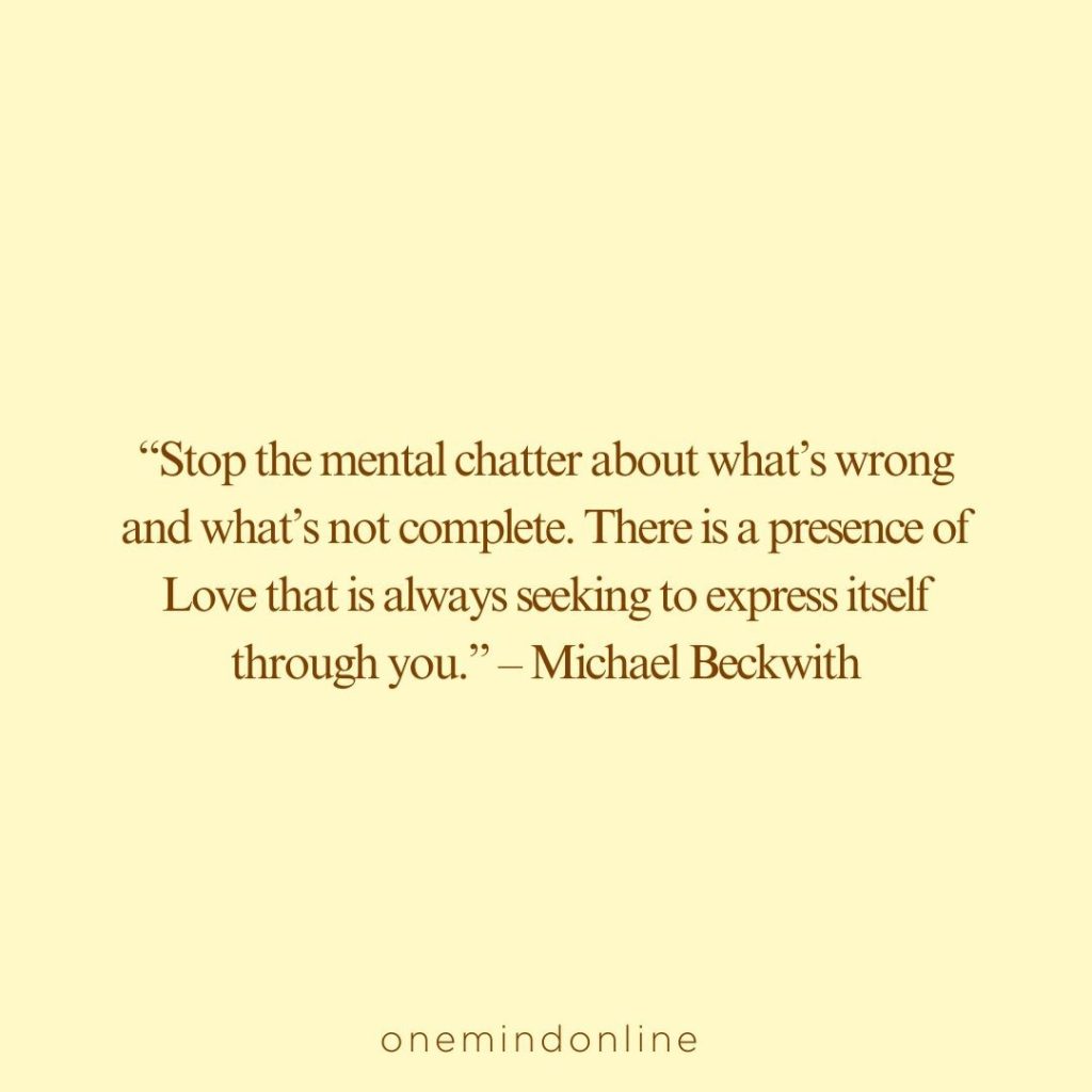 “Stop the mental chatter about what’s wrong and what’s not complete. There is a presence of Love that is always seeking to express itself through you.” – Michael Beckwith