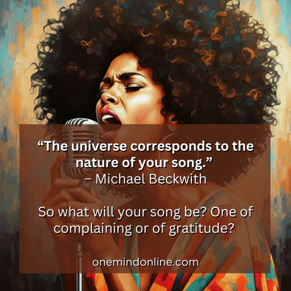 “The universe corresponds to the nature of your song.” – Michael Beckwith (So what will your song be? One of complaining or of gratitude?)