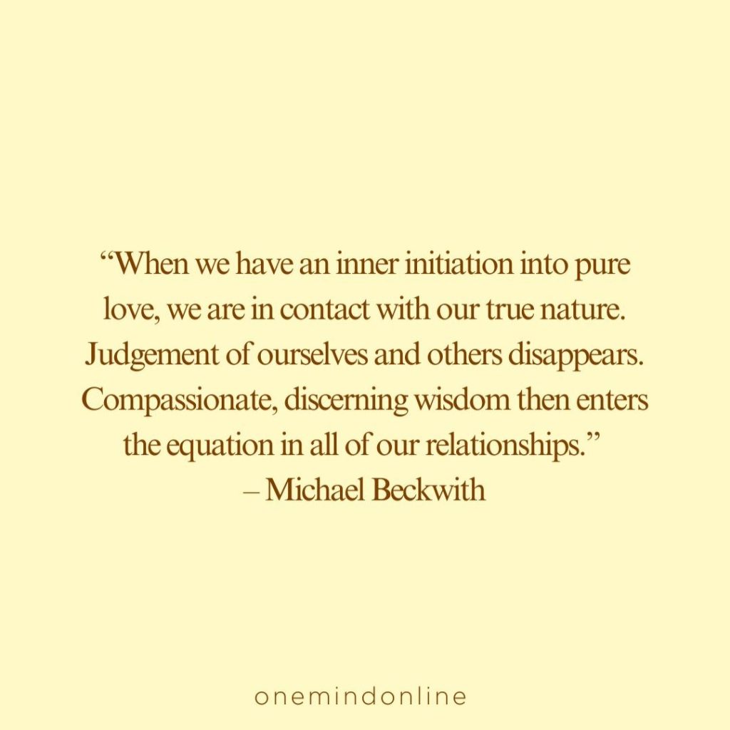 “When we have an inner initiation into pure love, we are in contact with our true nature. Judgement of ourselves and others disappears. Compassionate, discerning wisdom then enters the equation in all of our relationships.” – Michael Beckwith