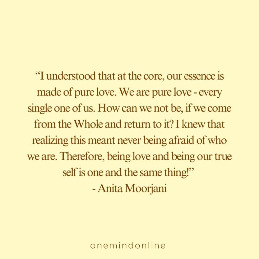 I have come to learn that many of us (perhaps even most of us) have a fear of being fundamentally flawed. A deep-seated fear that at our core we are somehow broken. A sense that our authentic self doesn’t quite fit into the mould that society expects? Many of us spend years masking our true essence, afraid to reveal our unique quirks and imperfections. Anita Moorjani has a beautiful message that speaks directly to this misconception and reminds us that the foundational truth is, that we are made of pure love.