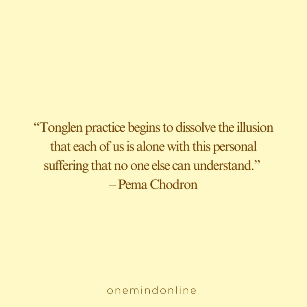 “Tonglen practice begins to dissolve the illusion that each of us is alone with this personal suffering that no one else can understand.” – Pema Chodron