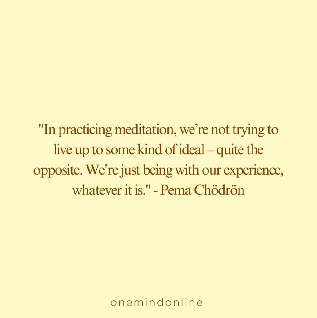 “In practicing meditation, we’re not trying to live up to some kind of ideal – quite the opposite. We’re just being with our experience, whatever it is.” – Pema Chödrön