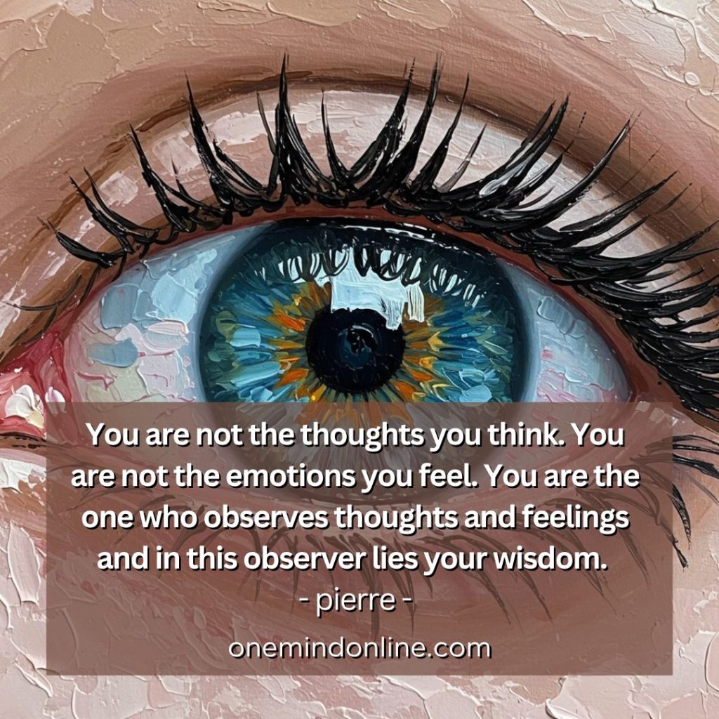You are not the thoughts you think. You are not the emotions you feel. You are the one who observes thoughts and feelings, and in this observer lies your wisdom. – pierre –