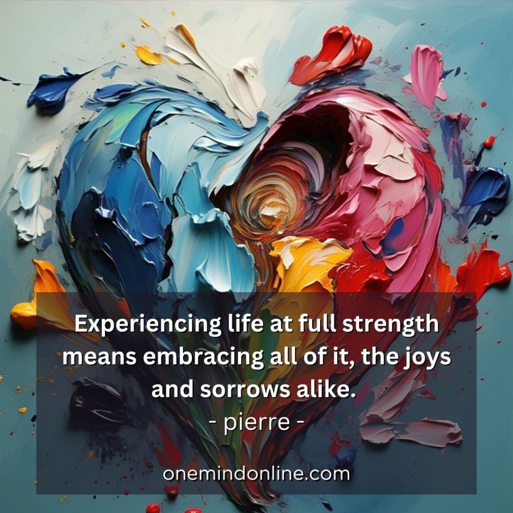 Experiencing life at full strength means embracing all of it, the joys and sorrows alike. – pierre –
