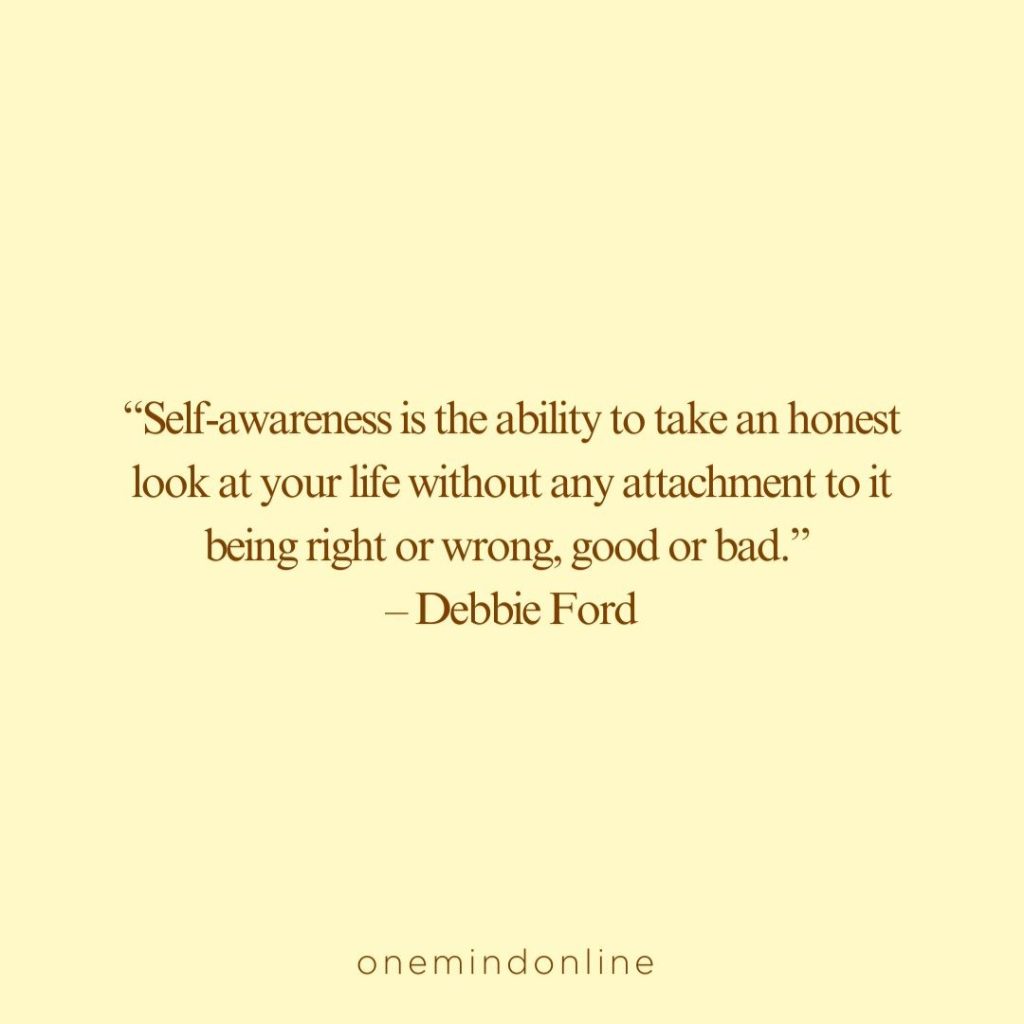 “Self-awareness is the ability to take an honest look at your life without any attachment to it being right or wrong, good or bad.” – Debbie Ford