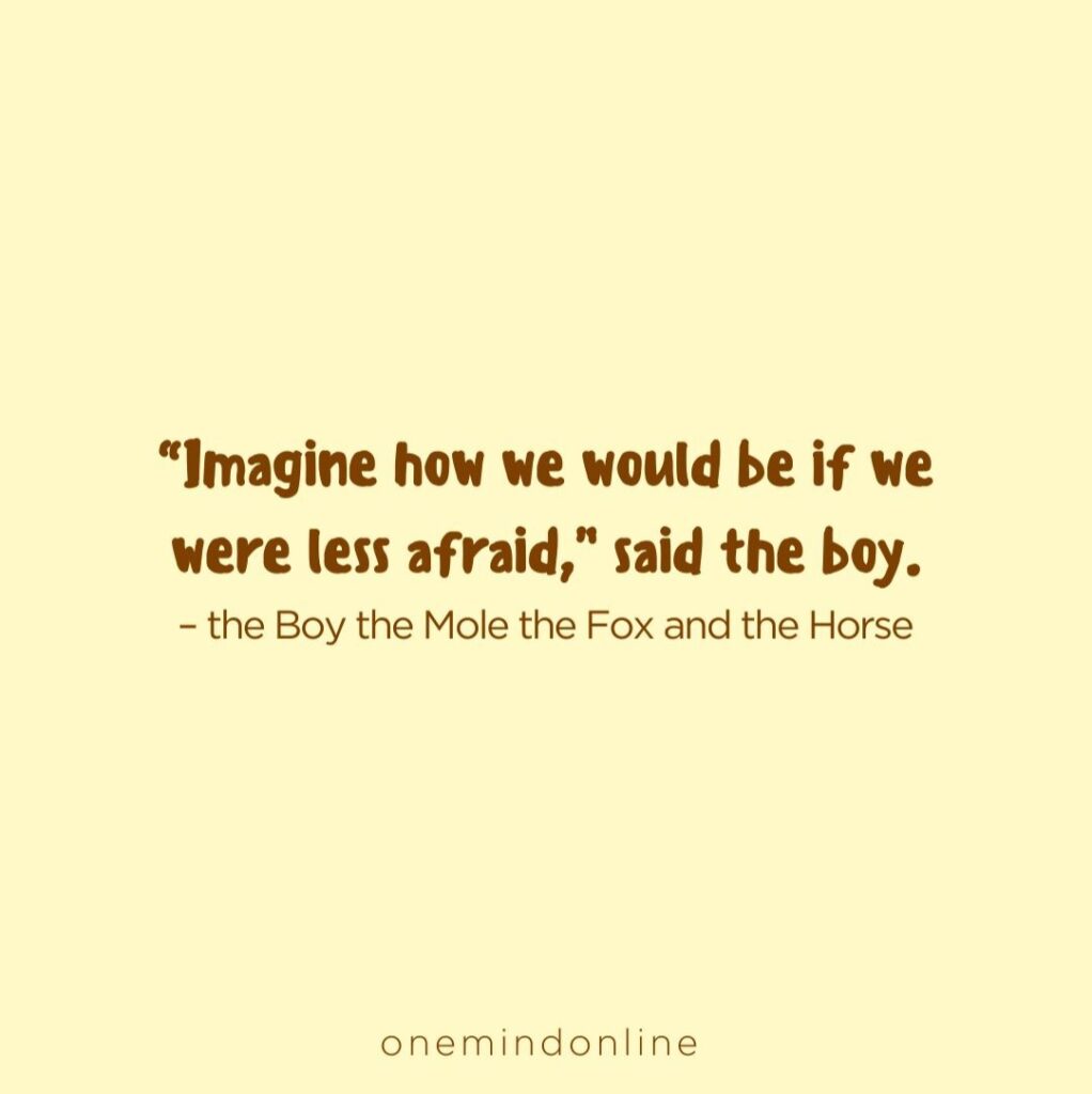 “Imagine how we would be if we were less afraid,” said the boy. – the Boy the Mole the Fox and the Horse