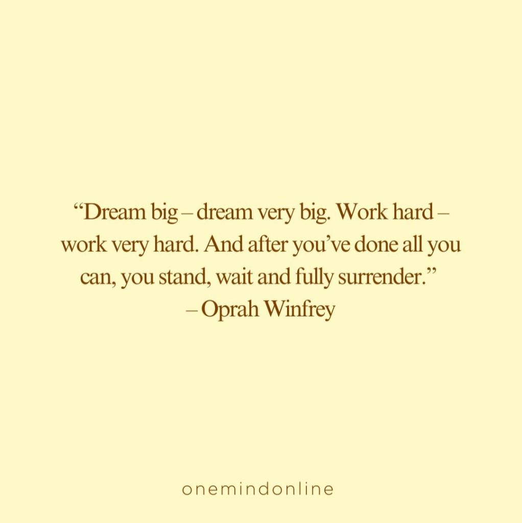 “Dream big – dream very big. Work hard – work very hard. And after you’ve done all you can, you stand, wait and fully surrender.” – Oprah Winfrey