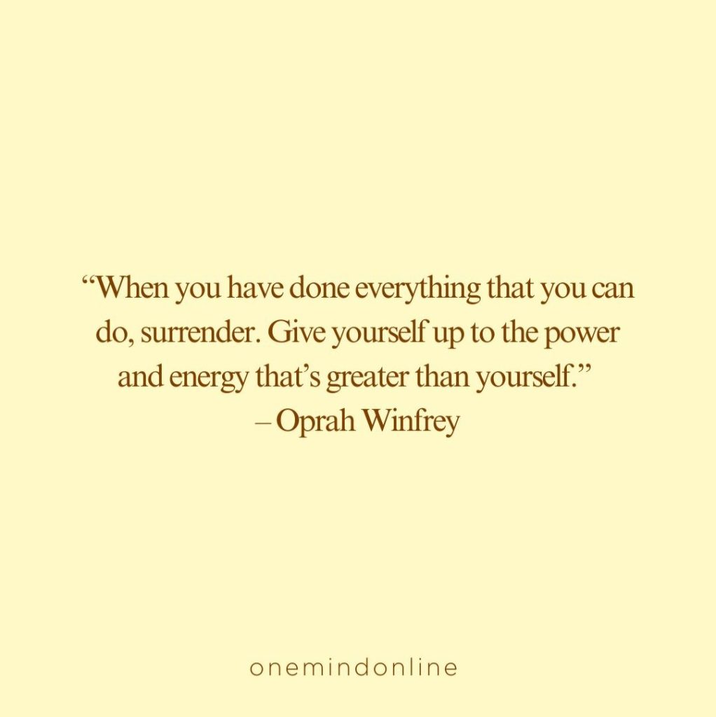 “When you have done everything that you can do, surrender. Give yourself up to the power and energy that’s greater than yourself.” – Oprah Winfrey