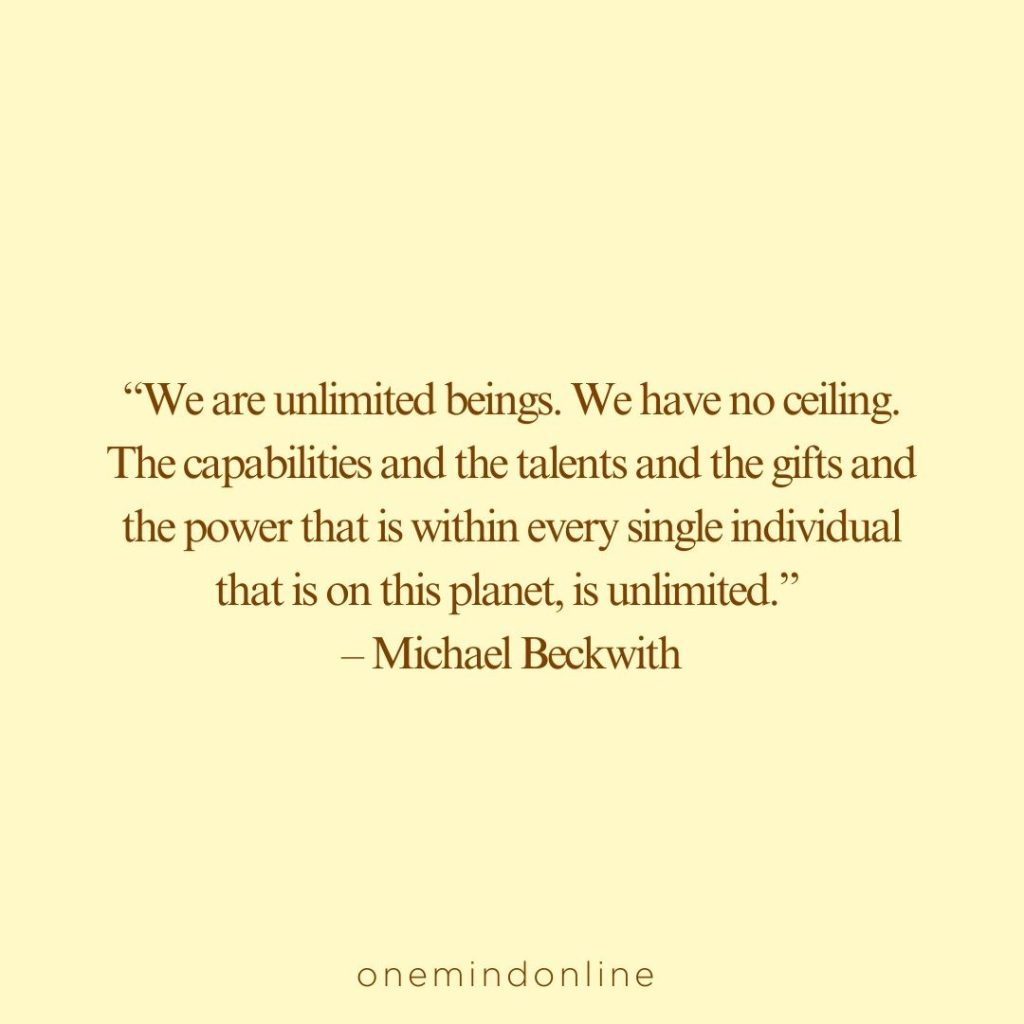 “We are unlimited beings. We have no ceiling. The capabilities and the talents and the gifts and the power that is within every single individual that is on this planet, is unlimited.” – Michael Beckwith