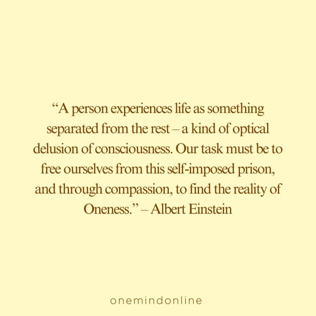 “A person experiences life as something separated from the rest – a kind of optical delusion of consciousness. Our task must be to free ourselves from this self-imposed prison, and through compassion, to find the reality of Oneness.” – Albert Einstein