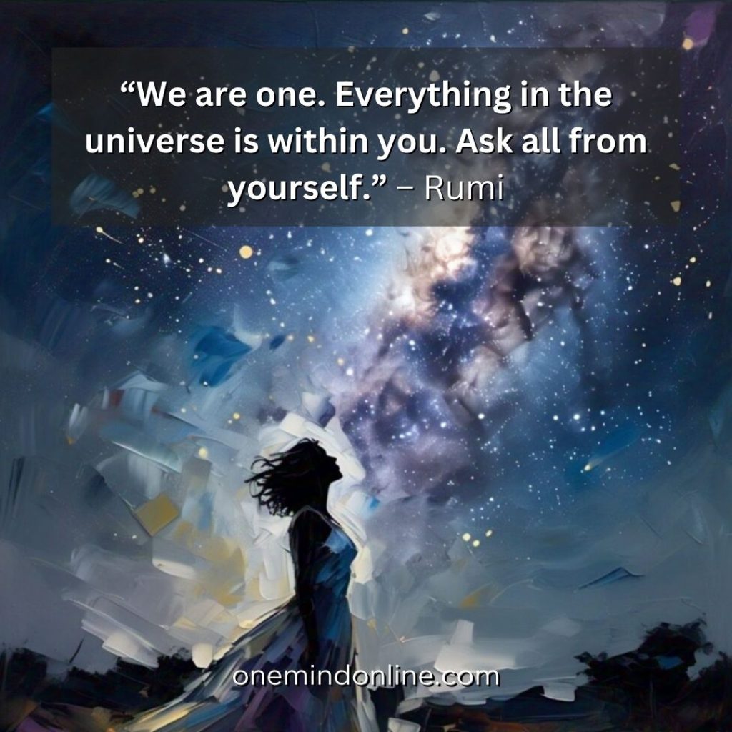 “We are one. Everything in the universe is within you. Ask all from yourself.” – Rumi
